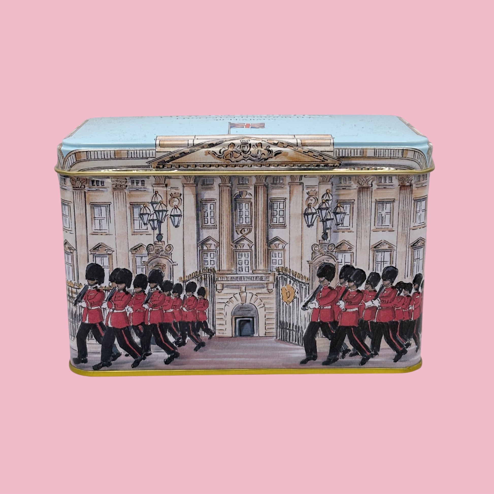 Buckingham Palace Tea Tin, contains 40 tea bags and is a lovely reminder of your time visiting the capital city London. The tin has an image of Buckingham Palace which has been the official residence of Kings and Queens of the United Kingdom since 1837 with the Royal Guards in their smart uniforms marching during the Changing Of The Guard ceremony. The tin can be reused or collected.